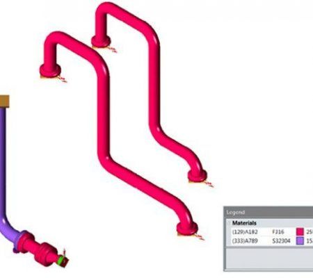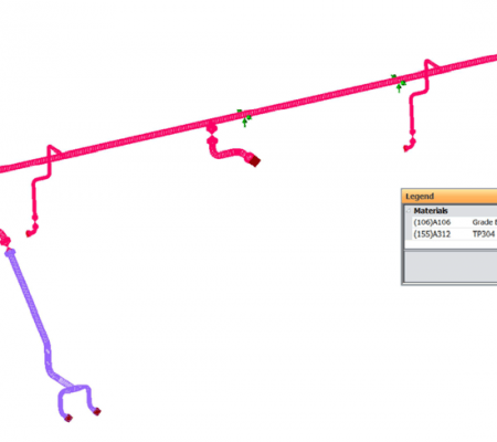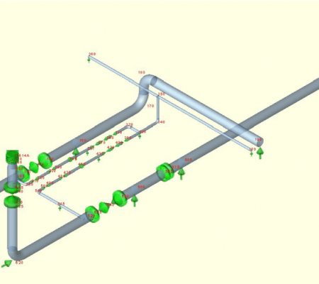 The purpose of this project was the analysis of the proposed pipe routing, location of supports (fixed points, guides, springs) and stress and flexibility analysis for an 8” NPS carbon steel steam line as per the configuration shown.
