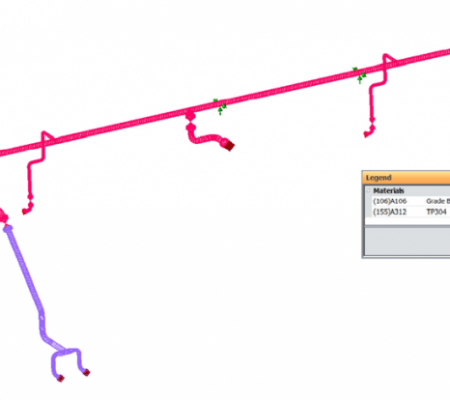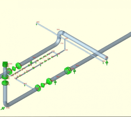 El proyecto consistió en el análisis del ruteo de tuberías propuesto, ubicación de soportes (puntos fijos, guías) y análisis de flexibilidad y estrés de dos líneas de 4” de material A-106 Gr.B. Los sistemas se analizaron con una presión de diseño de 4barg y una temperatura de diseño de 300º C.